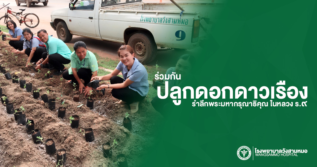 เจ้าหน้าที่โรงพยาบาลวังสามหมอ ร่วมกันปลูกดอกดาวเรือง รำลึกพระมห...
