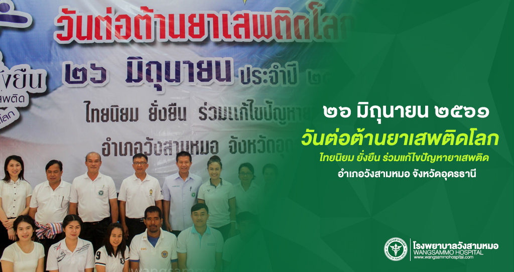 26 มิถุนายน 2561 ณ ที่ว่าการอำเภอวังสามหมอ จัดงานวันต่อต้านยาเส...