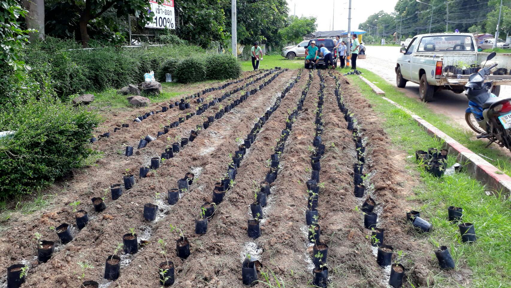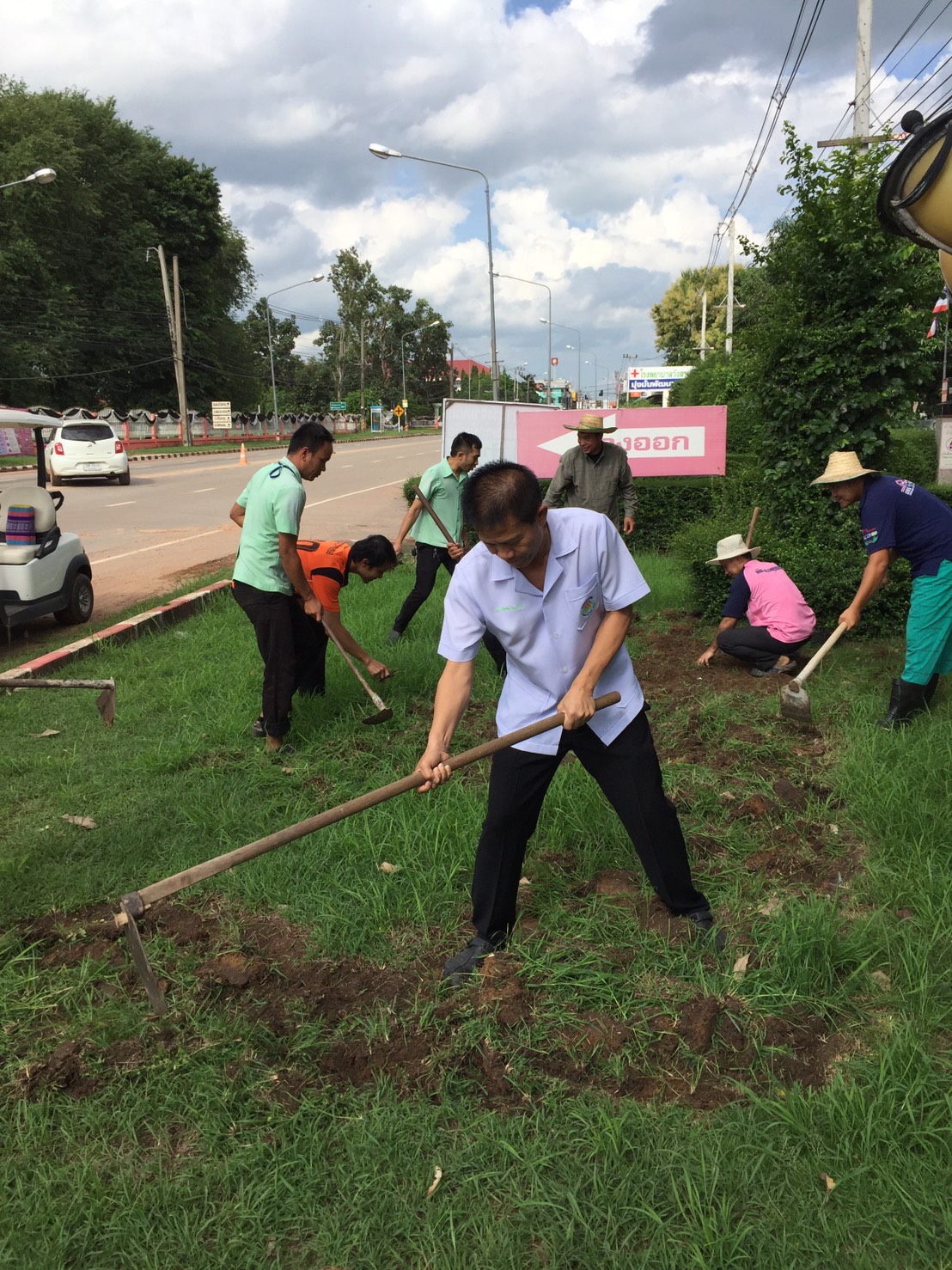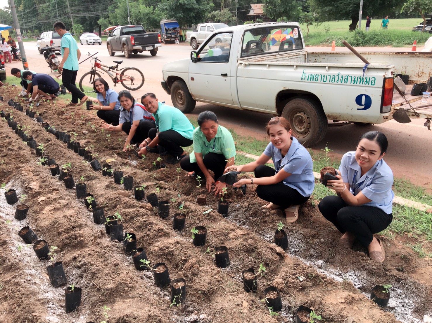 เจ้าหน้าที่โรงพยาบาลวังสามหมอ ร่วมกันปลูกดอกดาวเรือง รำลึกพระมหากรุณาธิคุณ ในหลวง ร.๙